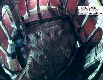THE ROCK – the Most Holy of Holies. Now housed and adorned with a mosque – a symbol of Satan’s hatred for his Father and his most famous Brother. This Rock is supposed to be housed in the Temple of God not a mosque. And soon it will be! (View from above). |