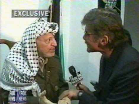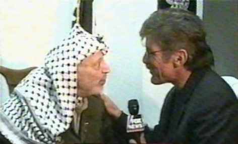 Geraldo Riviera (Fox News) becomes unhinged on camera and gets all touchy-feely with Arafat. It was a study in rampant emotional instability where Geraldo was totally blinded to Arafat’s mindless and murderous terrorism. Geraldo has chosen to ignore the evidence that links Arafat to indiscriminate homicide bombers against Israelis, and the madness of Moslems in general. |