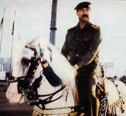Saddam Hussein on his white horse . He may not be parading for the world at the moment, but neither is he lying in his grave! |