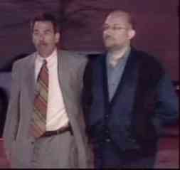 Sami al Arian on right. This time he’s got the bracelets on. He’s been arrested for terrorist activities. Let’s hope the Moslem scumbag rots in Jail. |