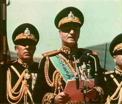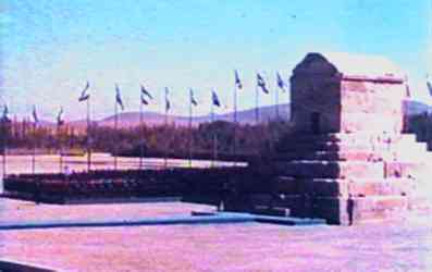 Shah Mohammid Reza Pahlavi at his coronation at the foot of Cyrus’ tomb. He was deposed a few years later by Ayatollah Homeini. |