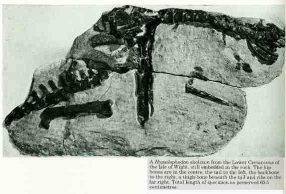Solid rock embedded with fossils . Careful chipping was needed to expose this dinosaur fossil. This creature was unlike any other on earth today. |