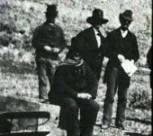 John Doyle Lee seen here sitting on the coffin that would soon hold his body. He was executed by firing squad at the scene of the massacre. This place of execution was chosen so that future generations could not deny these atrocities.